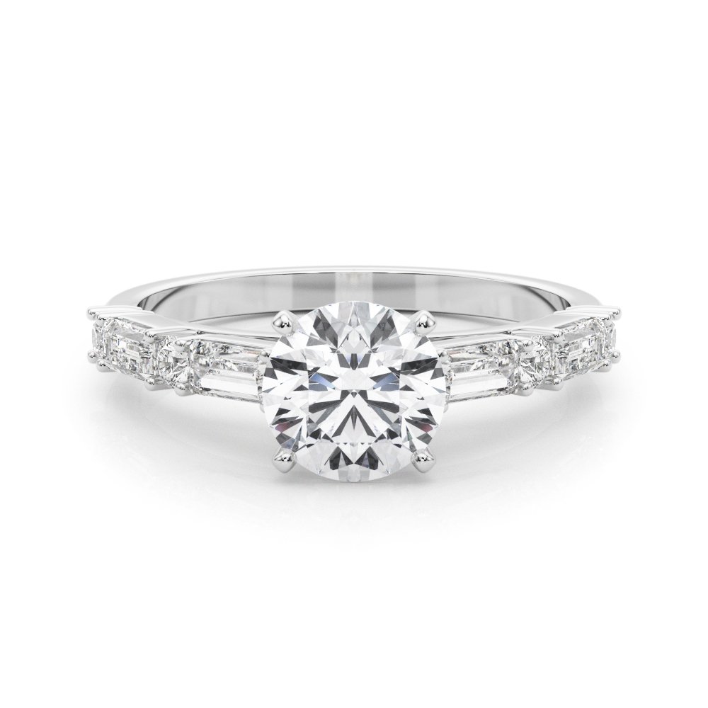 Round and Baguette Diamonds Setting with Matching Band