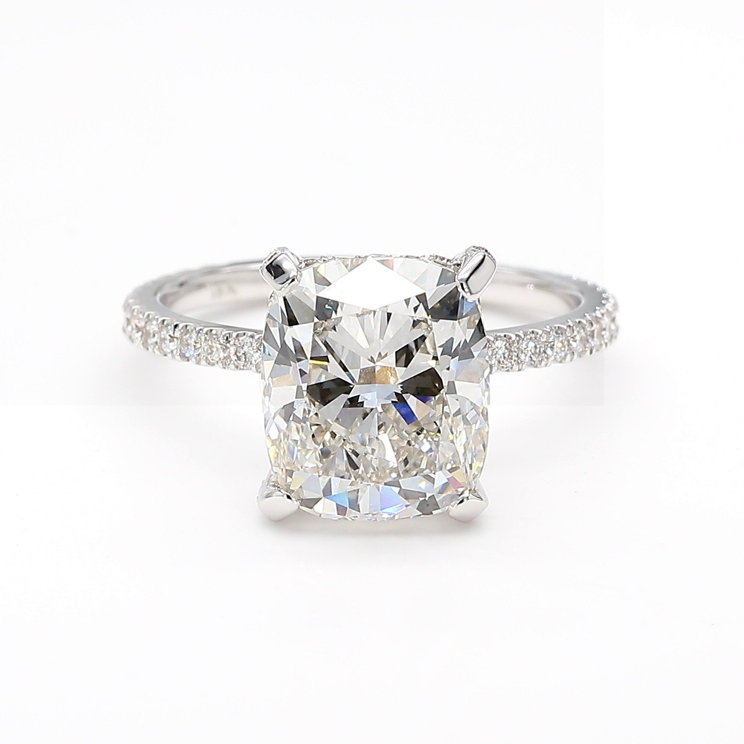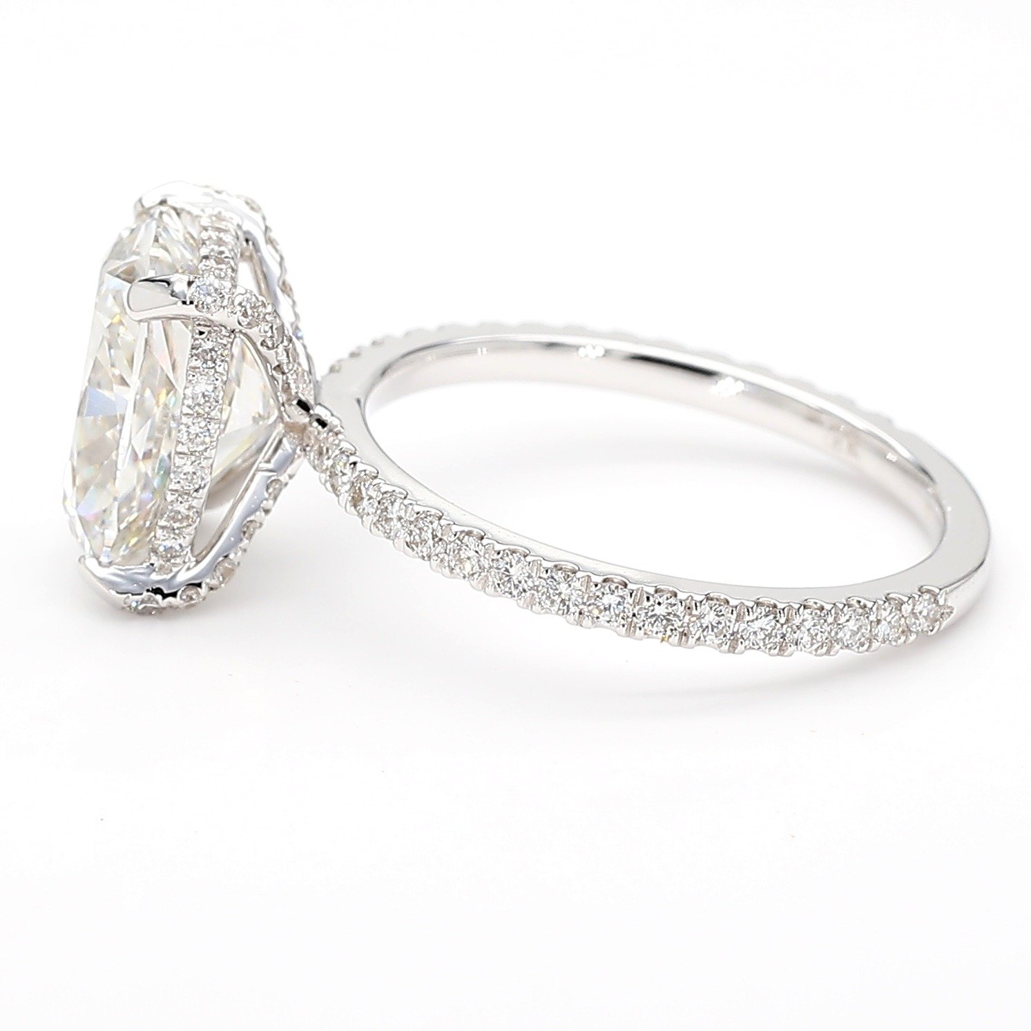 CUSHION 3.53 CARAT H VVS2 ON OUR 18K WHITE GOLD ELIANA HIDDEN HALO PAVE