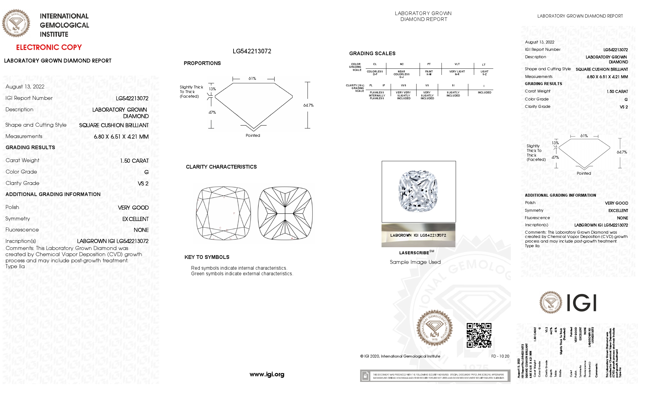 1.50 Carat - Cushion Cut Lab Grown Diamond