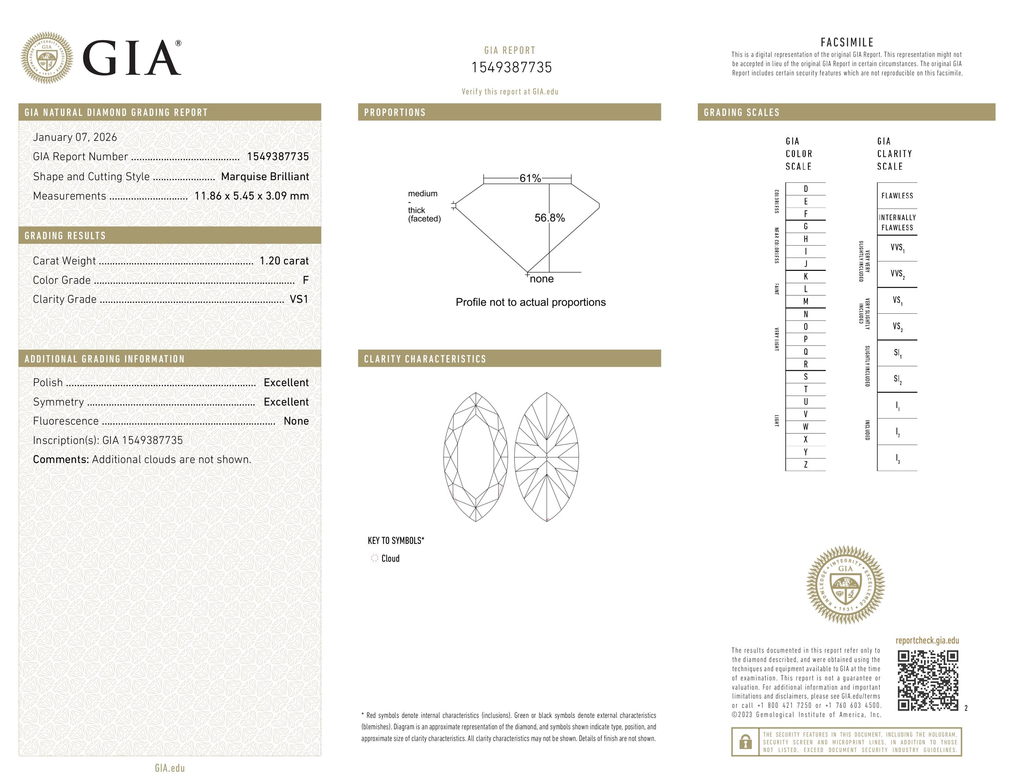 (VS1) This diamond contains very, few inclusions that are difficult for the untrained eye to see under 10x magnification. VS1 diamonds have no visible blemishes and are less expensive than higher clarity grades, therefore offering exceptional value while not compromising on quality.
