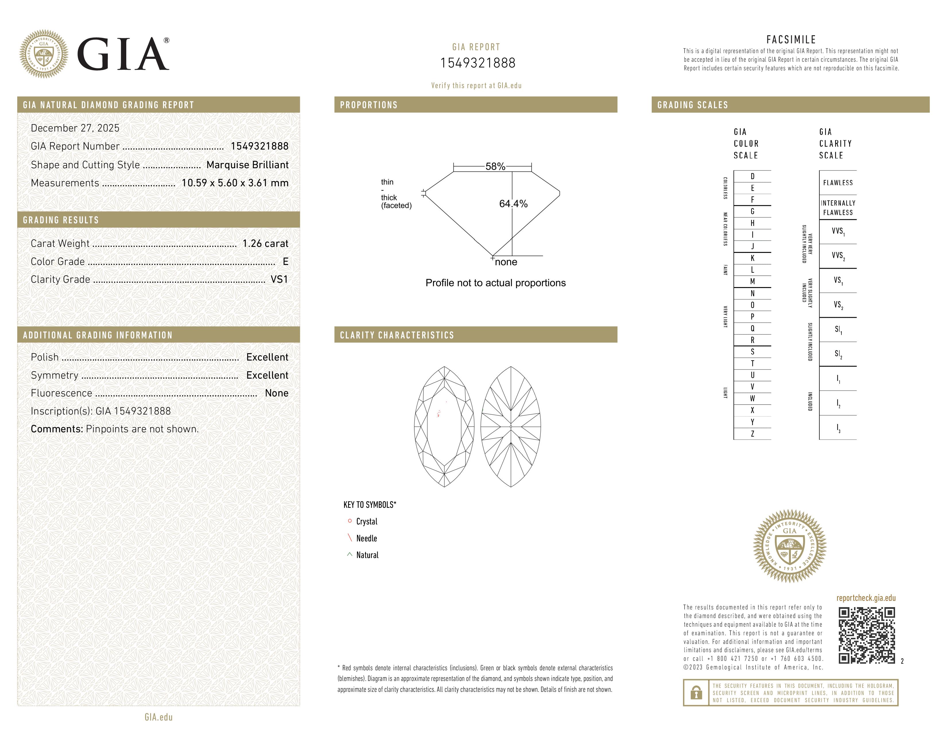 (Excellent) This diamond is cut to the highest standards determined by grading laboratories. Reflecting virtually all the light that enters, this diamond was cut to maximize brilliance and sparkle. Excellent cuts are exceptionally fine and rare and have ideal proportions and finish characteristics.
