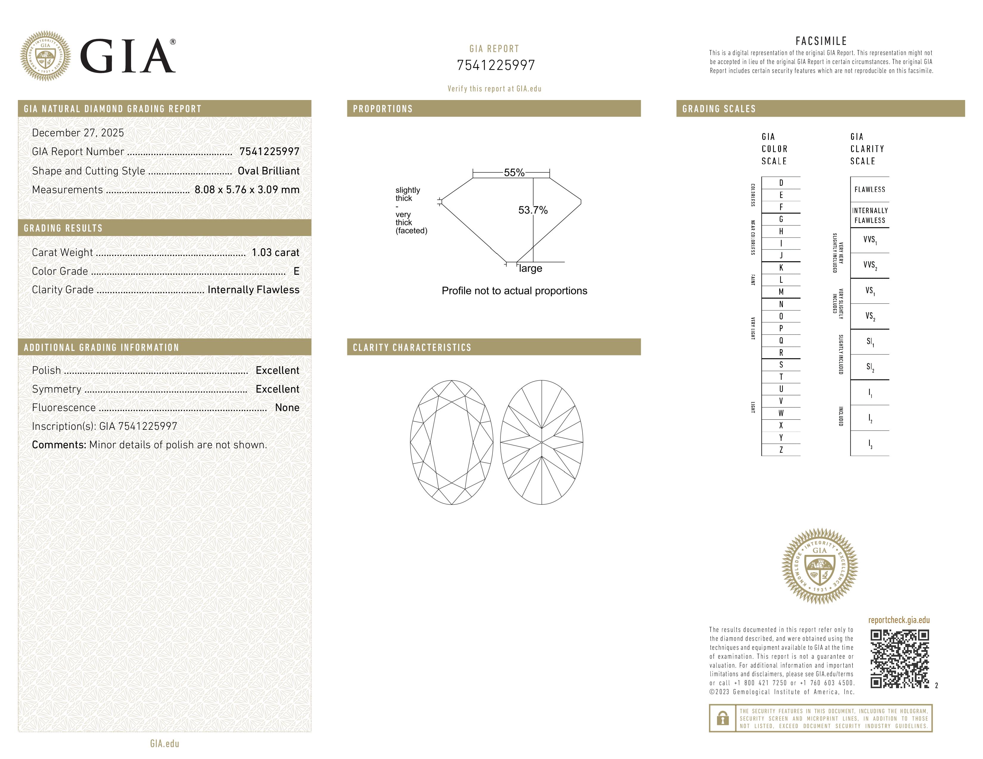 (Excellent) This diamond is cut to the highest standards determined by grading laboratories. Reflecting virtually all the light that enters, this diamond was cut to maximize brilliance and sparkle. Excellent cuts are exceptionally fine and rare and have ideal proportions and finish characteristics.