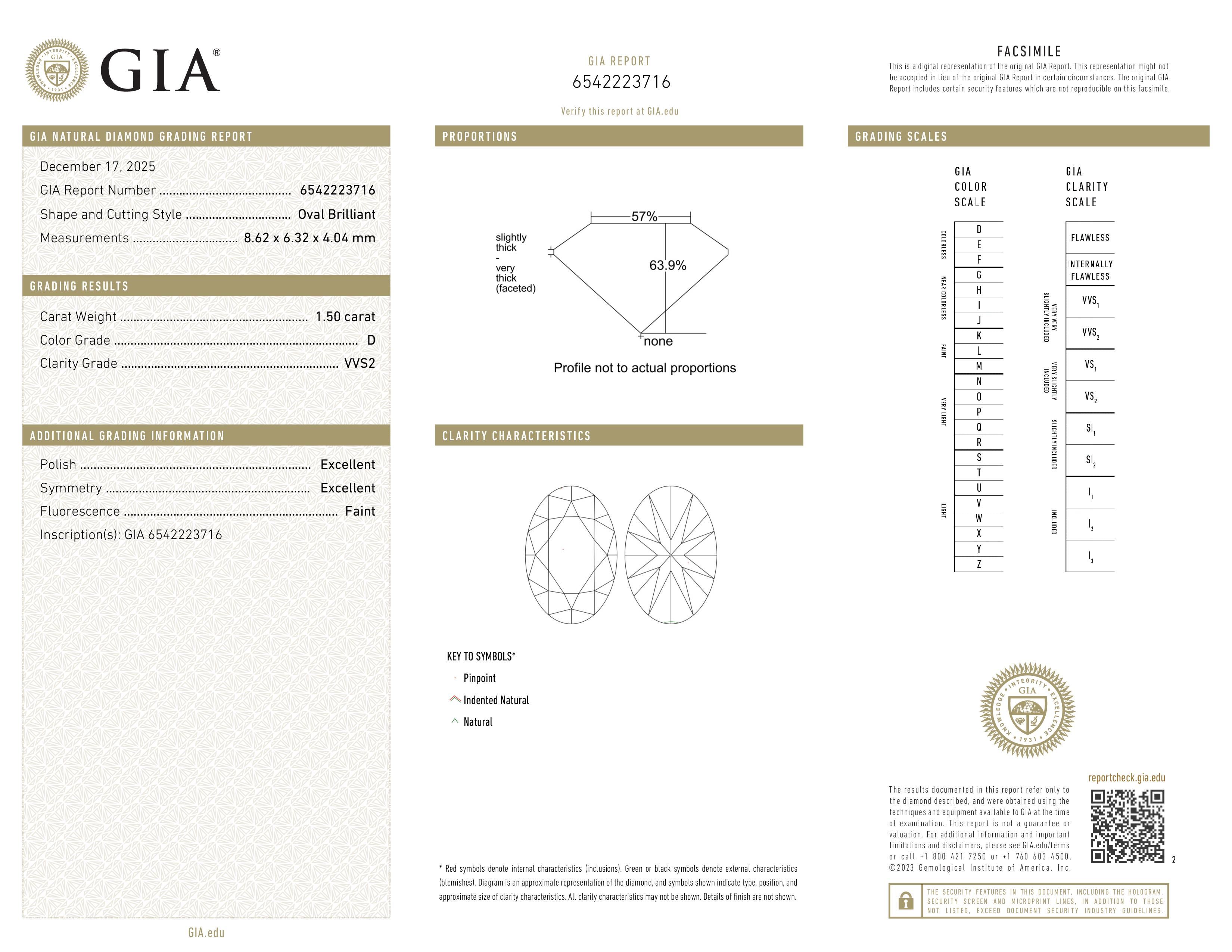 (VVS2) This diamond has very, very small inclusions. The minute inclusions are difficult for even a trained grader to see under 30x magnification. VVS2 graded diamonds are very rare.