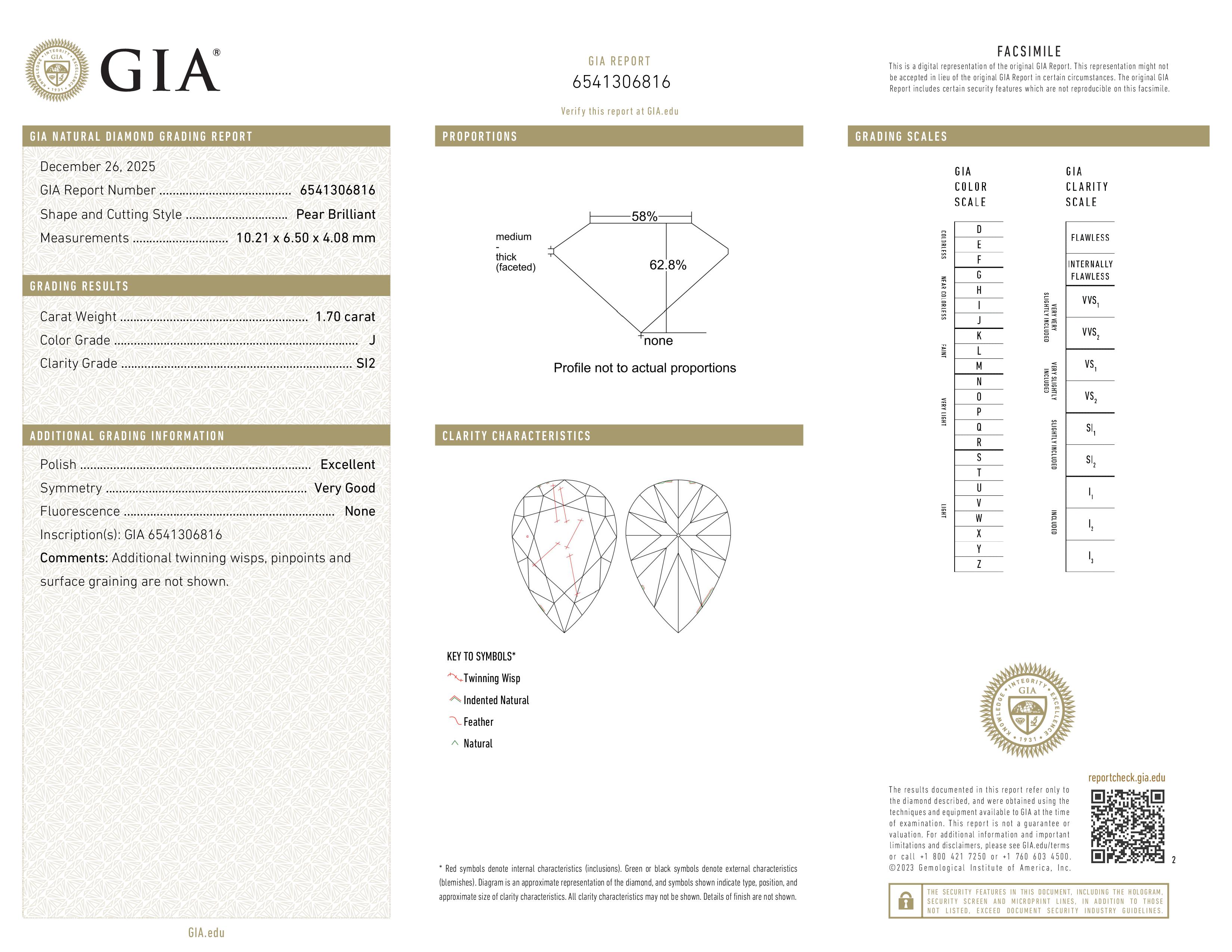 1.70 Carat - Pear Cut Natural Diamond
