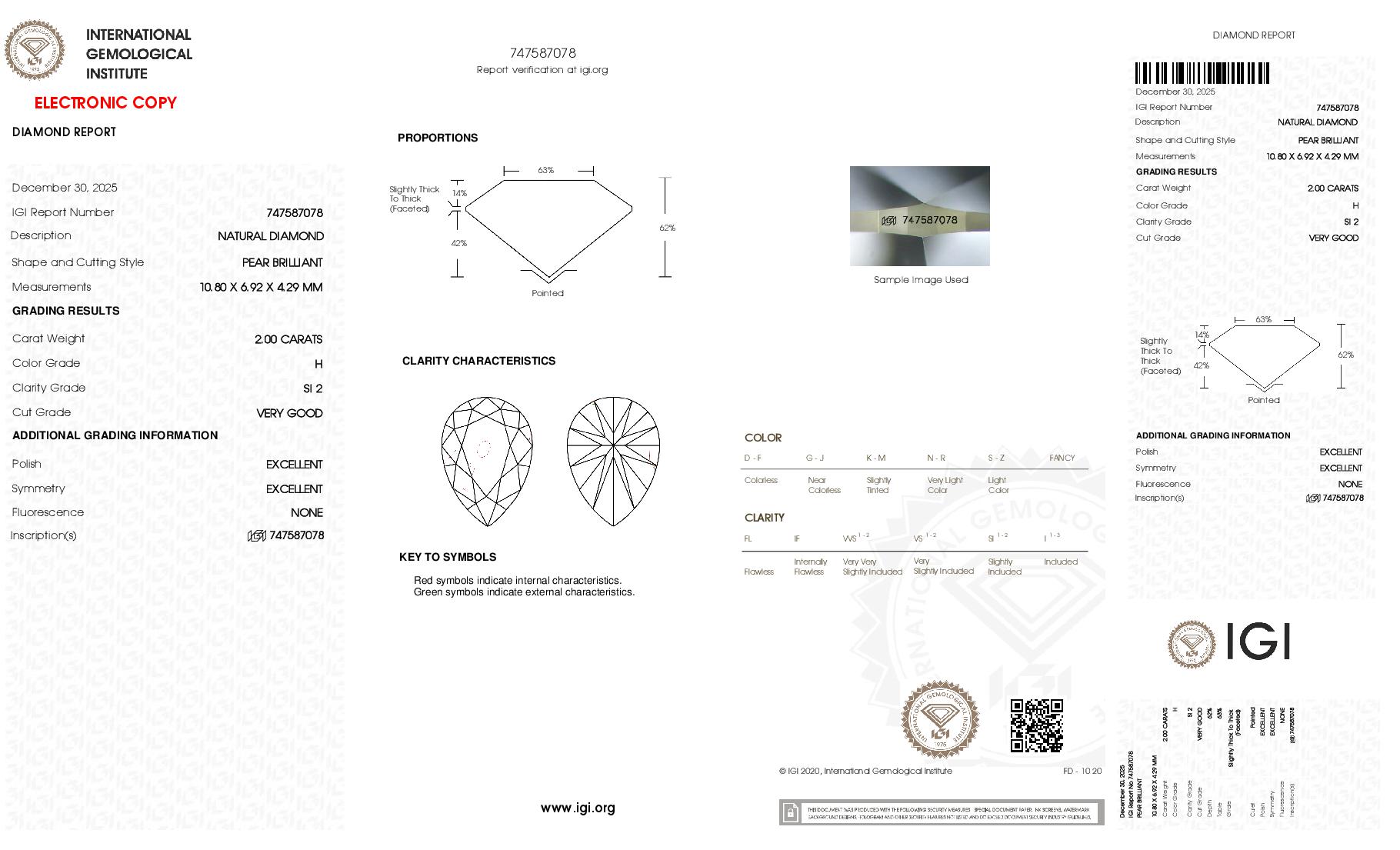 2.00 Carat - Pear Cut Natural Diamond