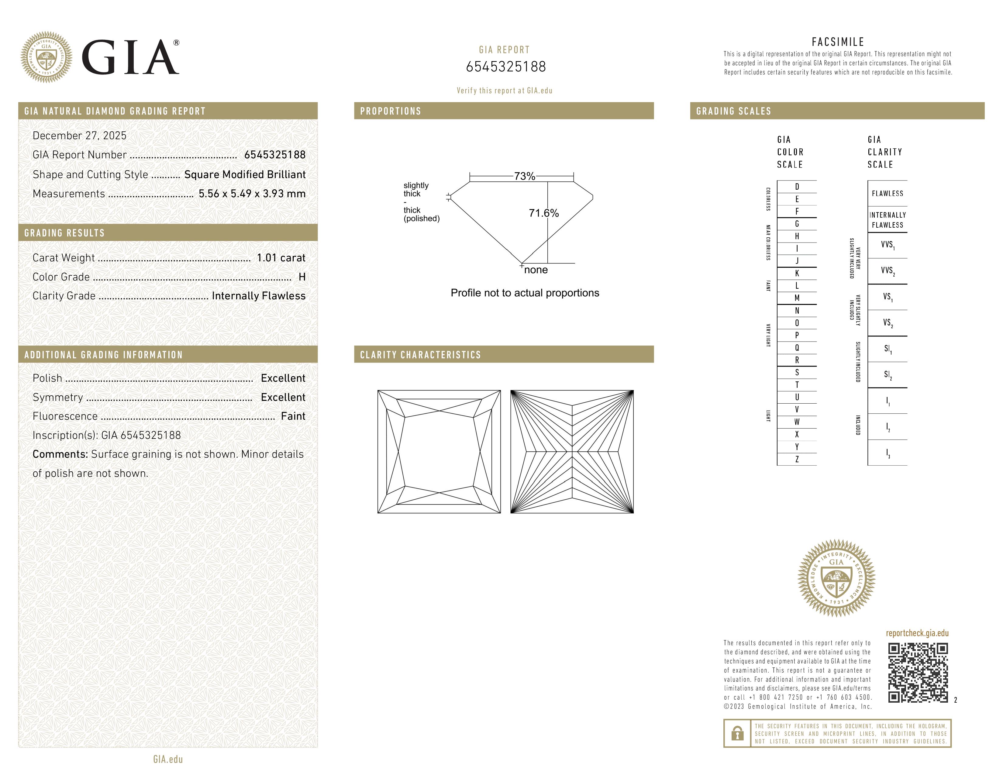 (H) This diamond offers great value for those that want to balance color and cost. The minute trace of color is not noticeable to the untrained eye and will look completely colorless when viewed face-up. An H-color diamond gives you the opportunity to buy a larger diamond for the same price as higher color grades.