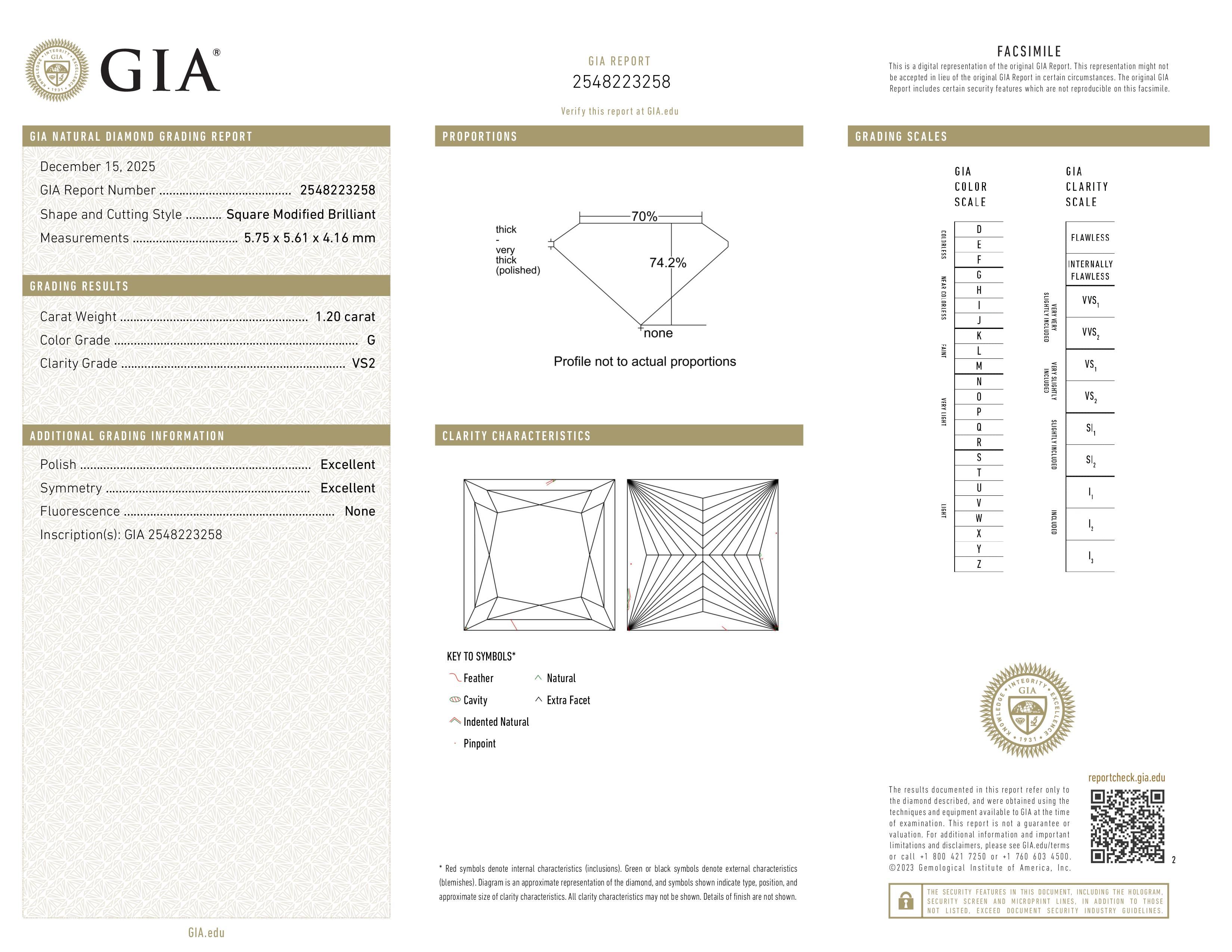 (VS2) Most people find this to be the sweet spot. This diamond contains very, few inclusions that are difficult for the untrained eye to see under 10x magnification. VS2 diamonds have no visible blemishes and are less expensive than higher clarity grades, therefore offering exceptional value while not compromising on quality.