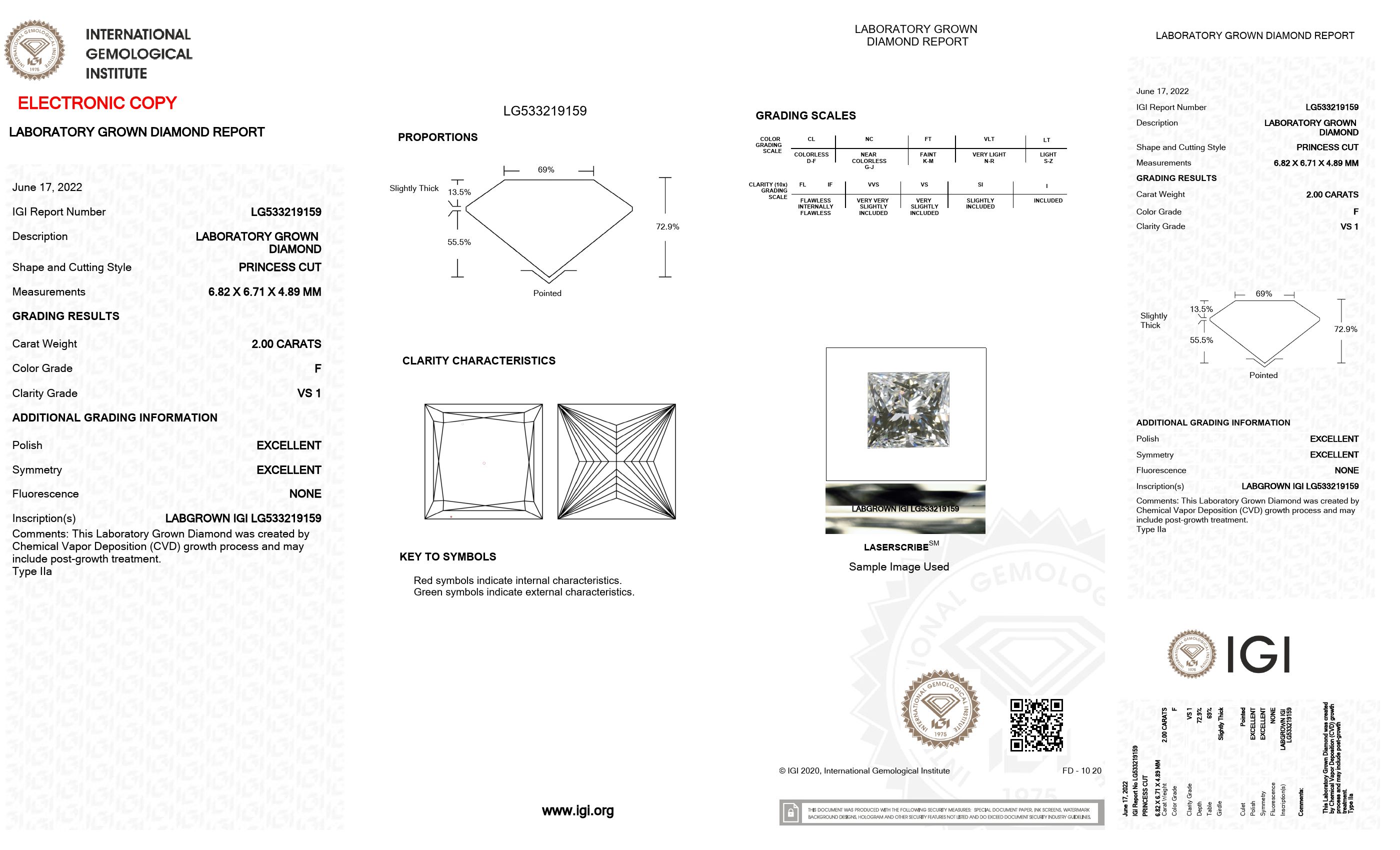 2.00 Carat - Princess Cut Lab Grown Diamond