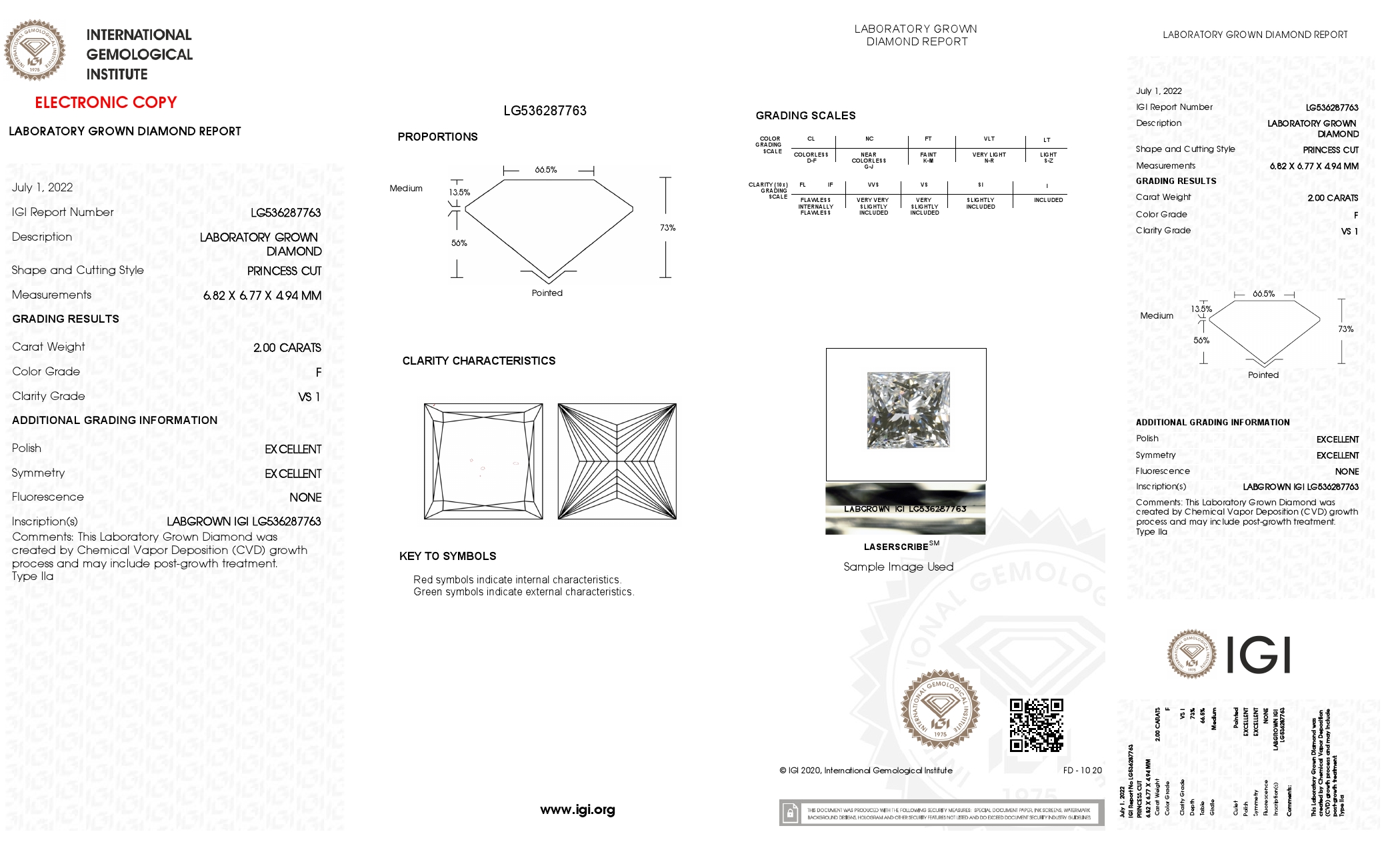 2.00 Carat - Princess Cut Lab Grown Diamond