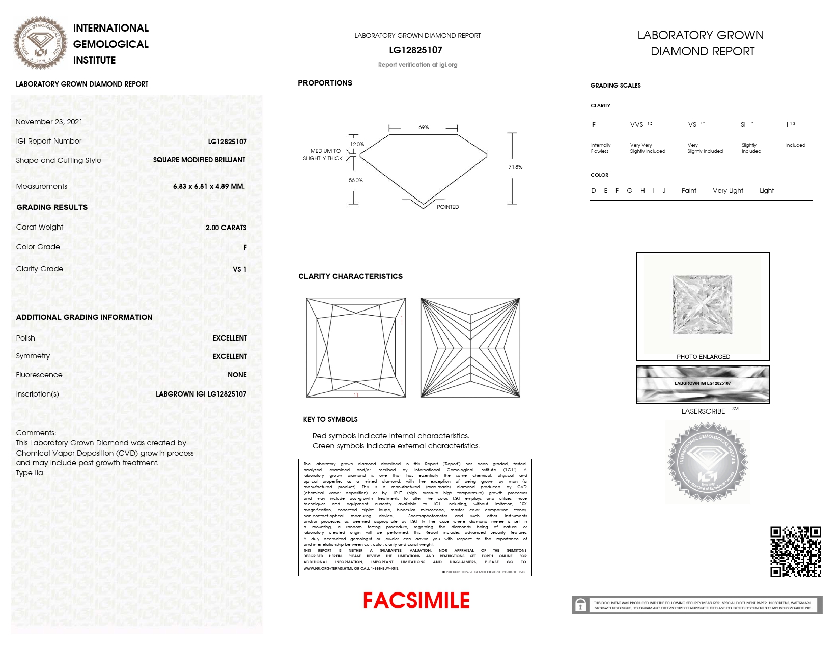 2.00 Carat - Princess Cut Lab Grown Diamond