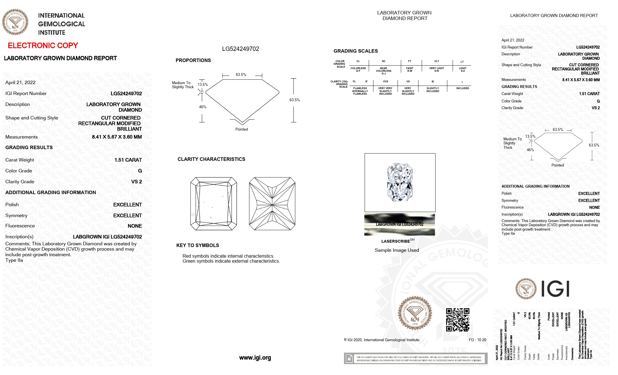1.51 Carat - Radiant Cut Lab Grown Diamond