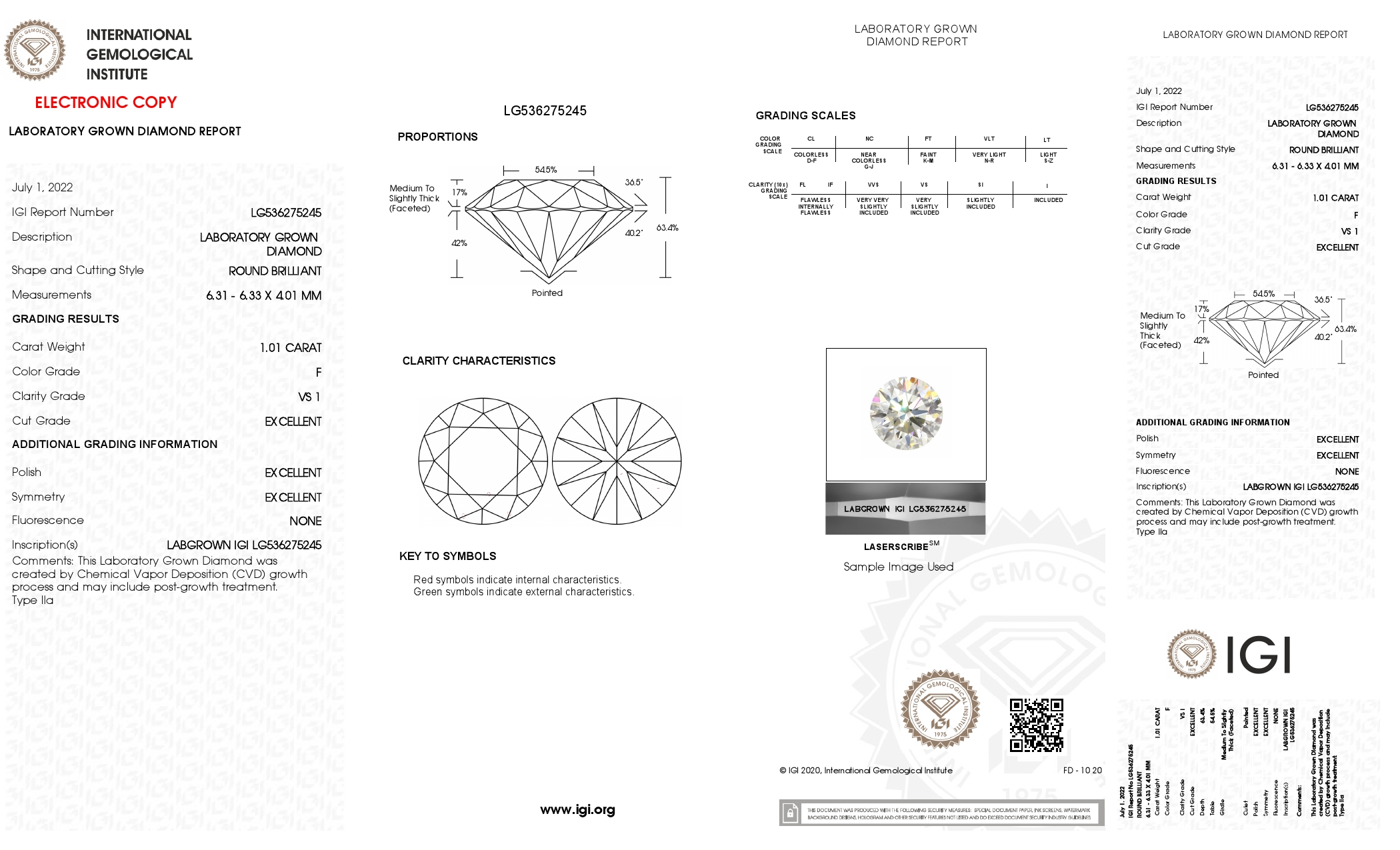 (VS1) This diamond contains very, few inclusions that are difficult for the untrained eye to see under 10x magnification. VS1 diamonds have no visible blemishes and are less expensive than higher clarity grades, therefore offering exceptional value while not compromising on quality.