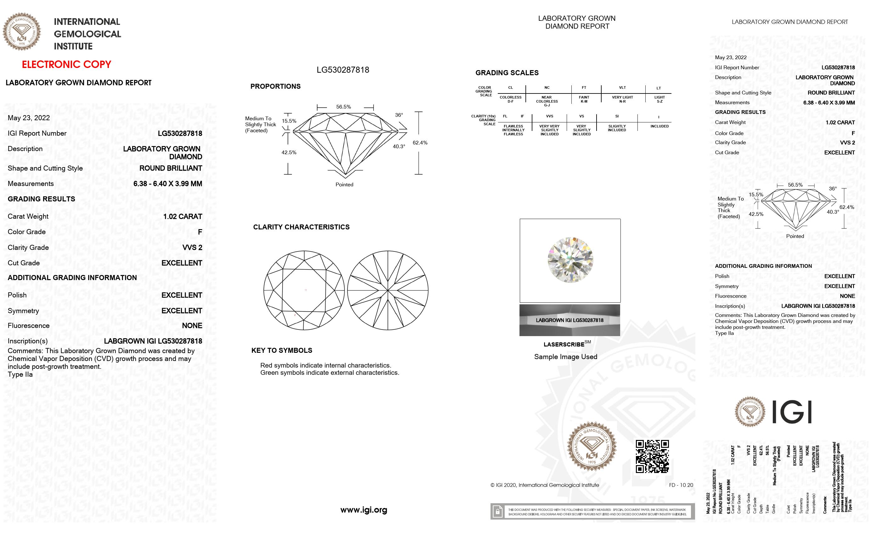 1.02 Carat - Round Cut Lab Grown Diamond