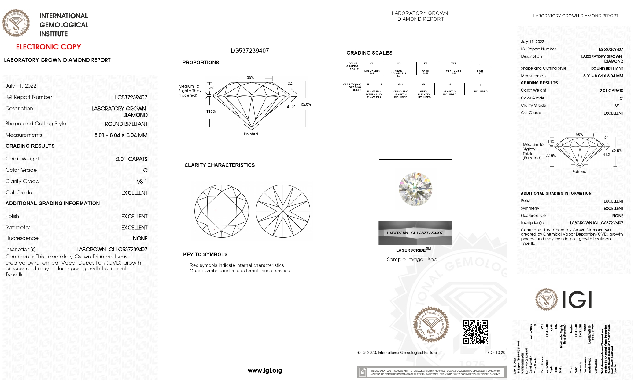 (VS1) This diamond contains very, few inclusions that are difficult for the untrained eye to see under 10x magnification. VS1 diamonds have no visible blemishes and are less expensive than higher clarity grades, therefore offering exceptional value while not compromising on quality.