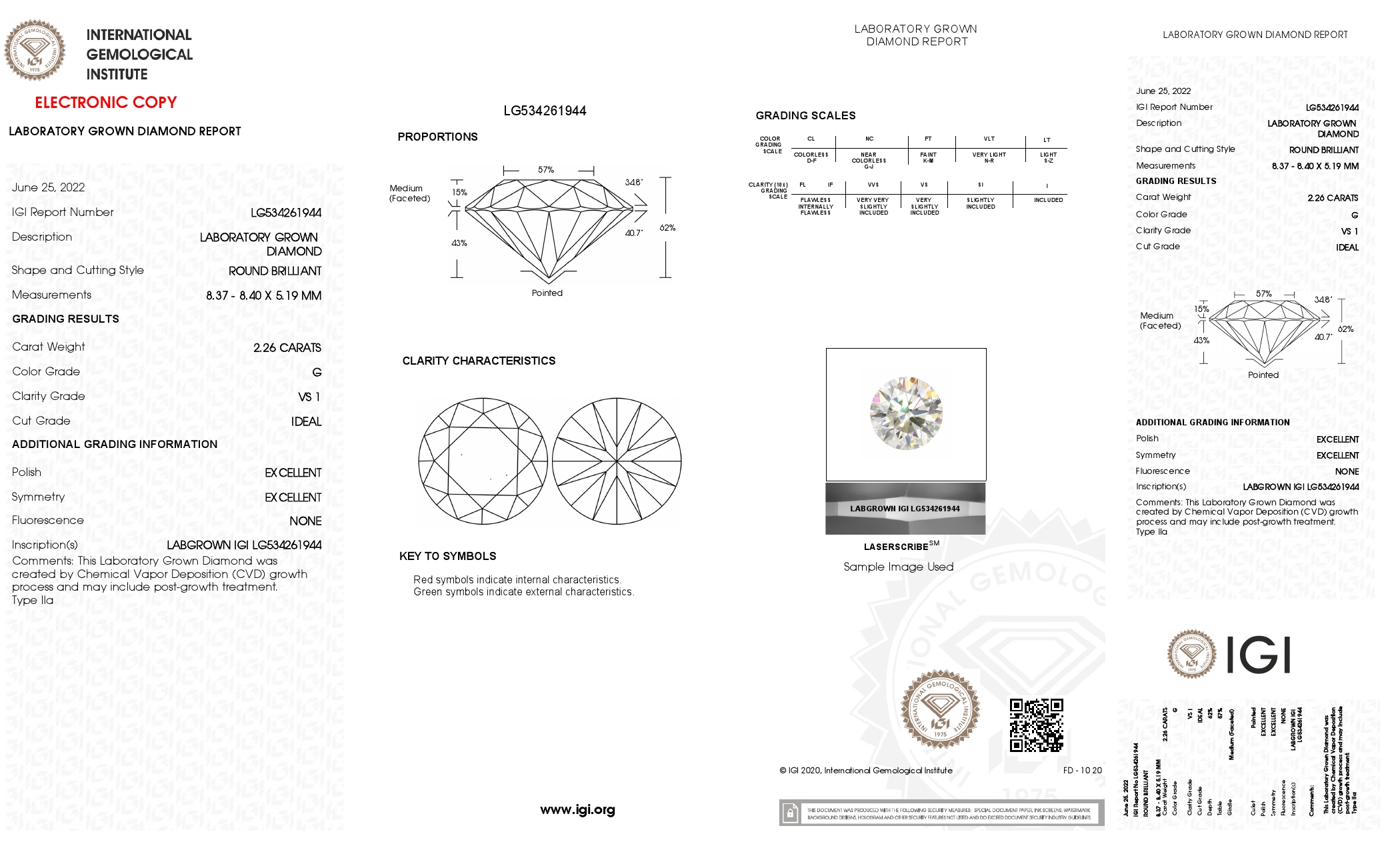 (VS1) This diamond contains very, few inclusions that are difficult for the untrained eye to see under 10x magnification. VS1 diamonds have no visible blemishes and are less expensive than higher clarity grades, therefore offering exceptional value while not compromising on quality.