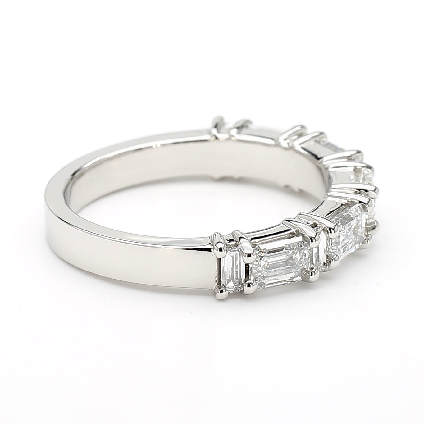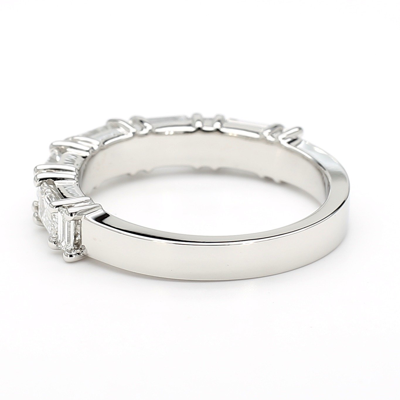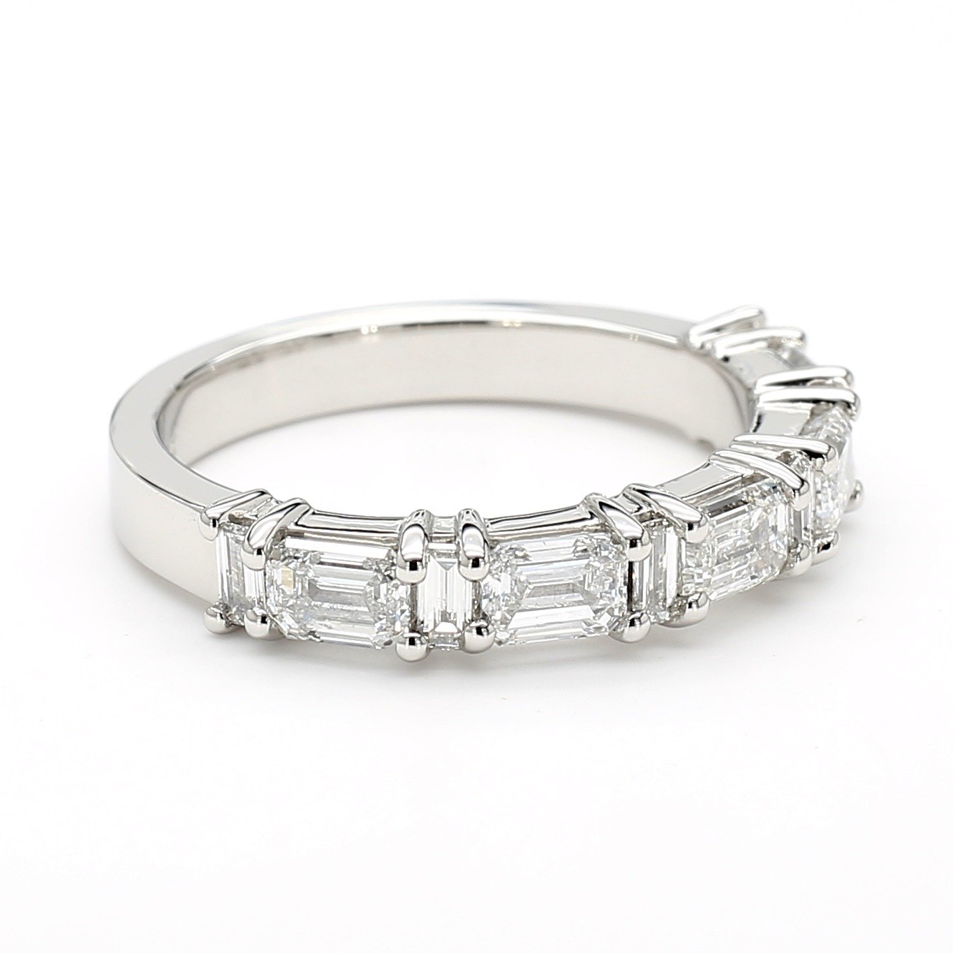 EMERALD AND STRAIGHT BAGUETTE WEDDING BAND in 14K White Gold
