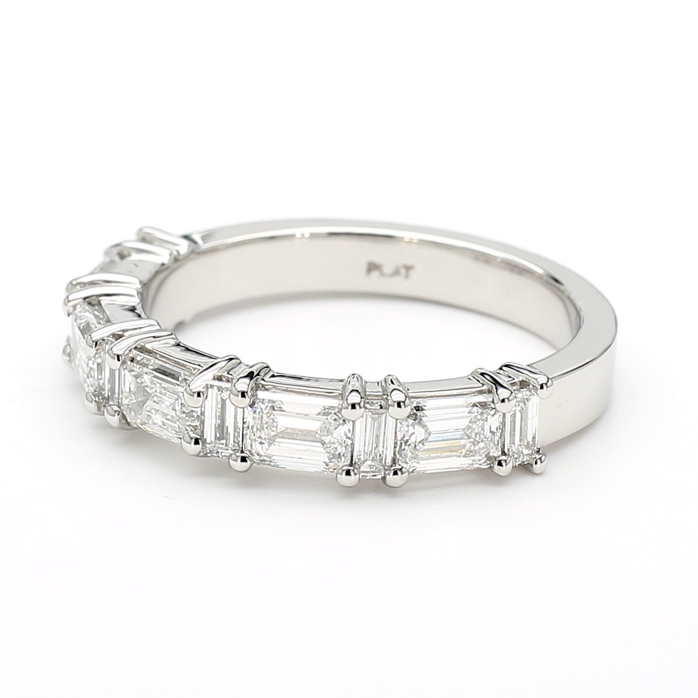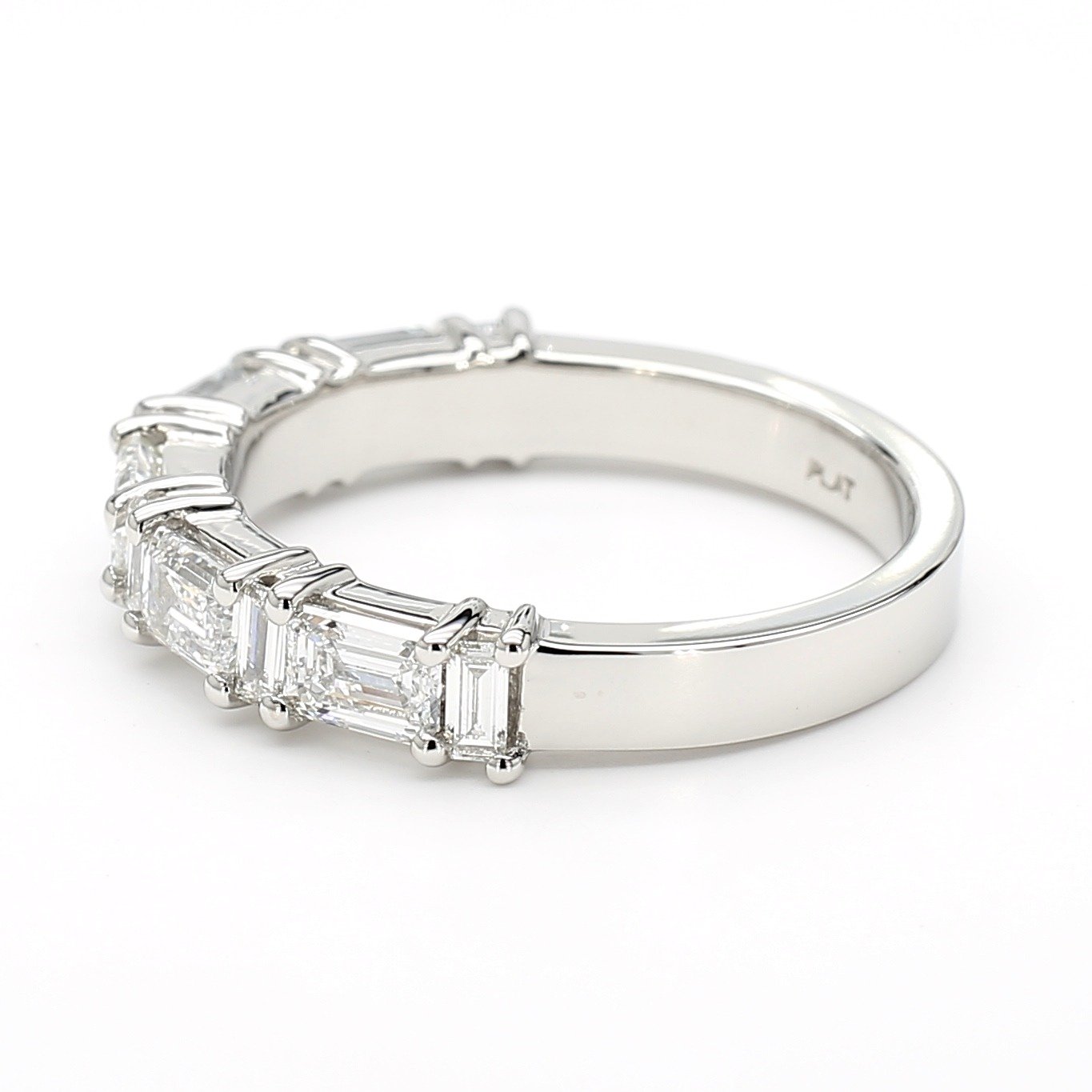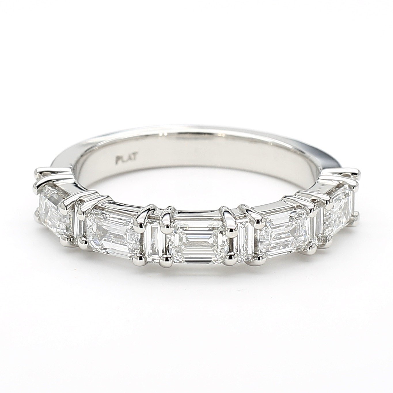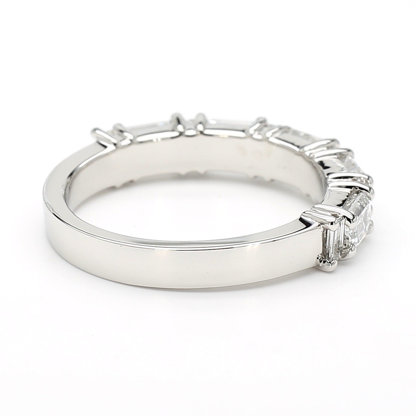 EMERALD AND STRAIGHT BAGUETTE WEDDING BAND in 14K White Gold